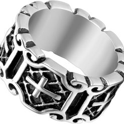 ステンレス リング メンズ 指輪 11MM アンティーク風 パンク系 ロック クロス 十字架 バレンタイン・ギフト ブラック&シルバー(銀)- [14号]