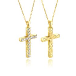 クロス ネックレス 国内メーカー 316L 3連 24K(24金) スワロフスキージルコニア GP 【 24k pvd gold 】金属アレルギー対応 PVDコーティング 正規スワロフスキー使用 メンズ レディース 十字架 クロスネックレス ハワイアン