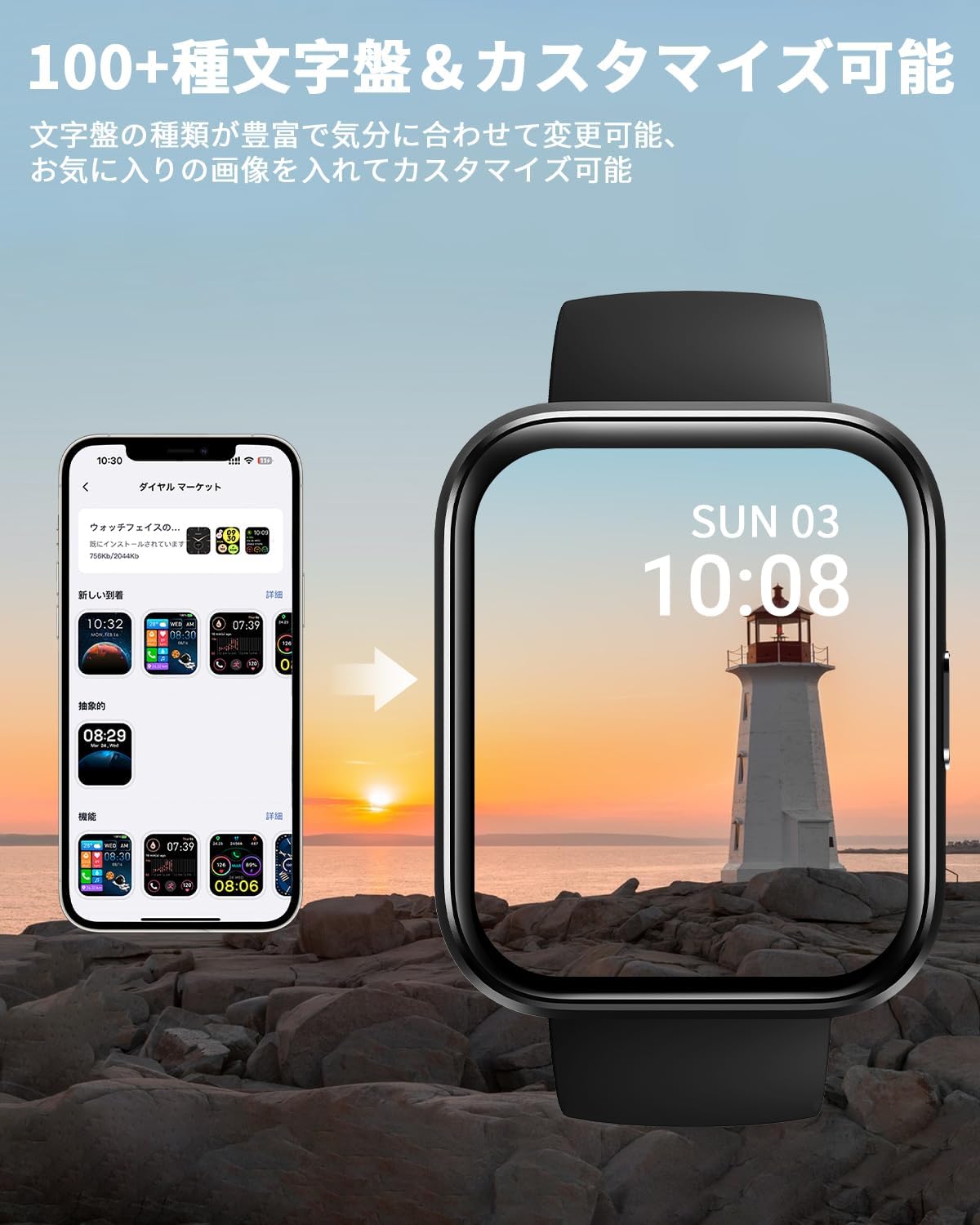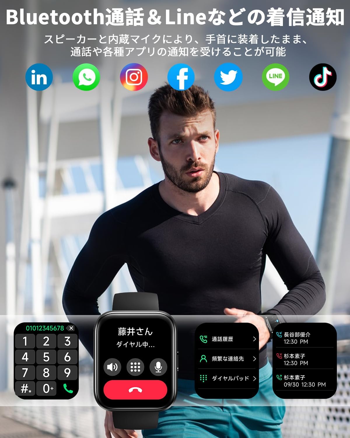 - 【各種のアプリの通知&有機ELディスプレイ&100種類文字盤DIY可】このスマートウォッチを介して、着信通知、LINEメッセージ、カレンダー、Emailなどのお知らせ受信もできます。スポーツシーンだけでなくビジネスシーンにも違和感なく使用できるモデルです。従来の液晶ディスプレイより、消費電力が少ない、リフレッシュレートが高い、視野角が広い、コントラスト比も高く鮮明な映像を表現できます。5段階調整可能の明るさで、強い日差しでも見やすくなります。100+種類の文字盤が用意されており、好みや気分によって自由に切り替えられるスマートウォッチです。携帯の写真などを設定することも可能です。