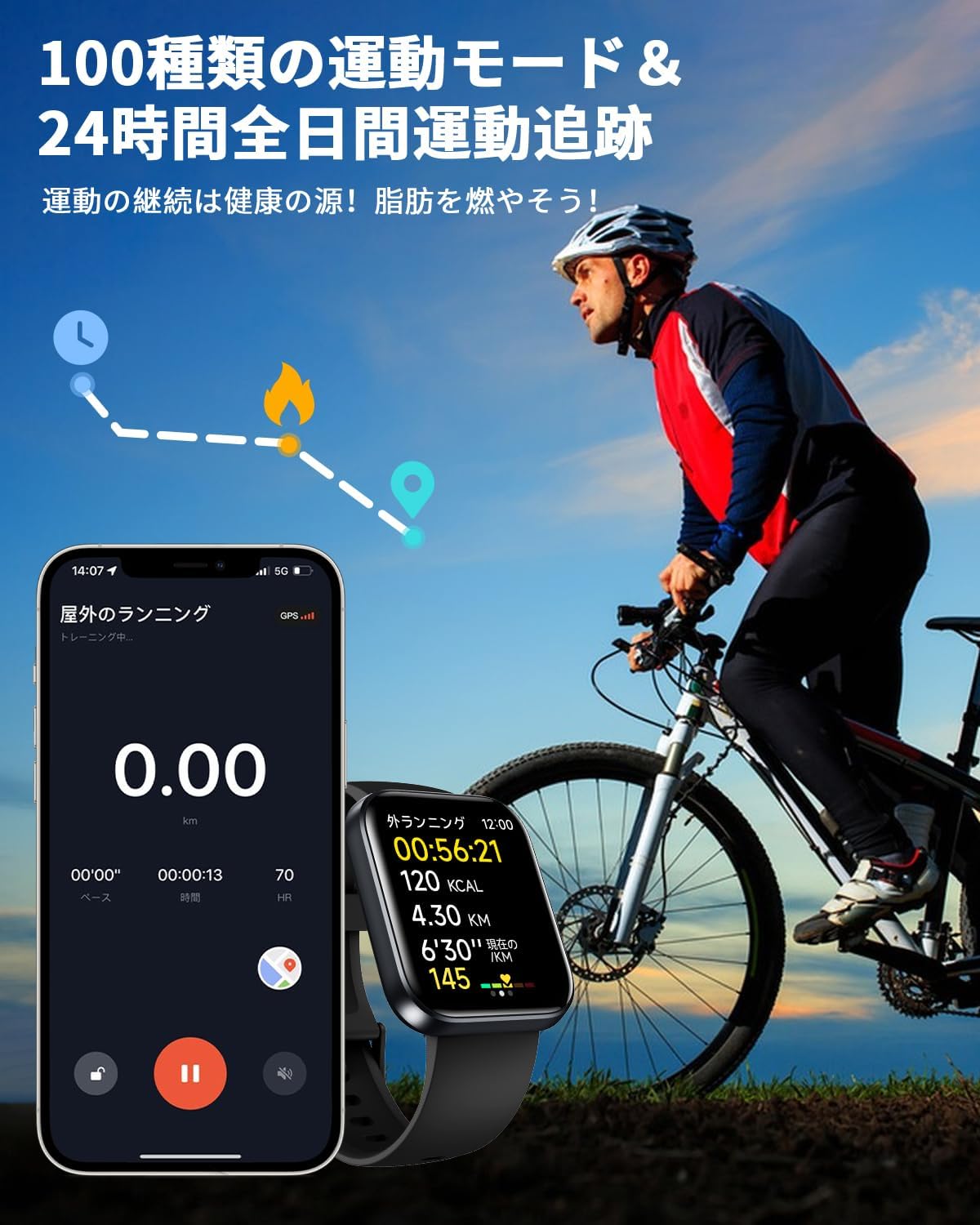 - 【60種スポーツモード&カロリー&騒音計&天気予報…機能盛り沢山】忙しい方でも体を鍛えている人が増えてきました!こちらのスポーツウォッチは、日々の活動記録や成果を可視化できるよう、ランニングやサイクリング、ヨガ、筋トレなどあらゆるエクササイズに活用できる60種類のスポーツモードが搭載されています。特には心拍数をはじめ、カロリー消費、走った距離を都度記録として残せるため自分に自信を持てるようになってきます。そのほか、騒音計/天気予報/音楽コントロール/懐中電灯/アラーム/ストップウォッチ/呼吸訓練/自動点灯/給水・薬・座りがちなリマインダーなど生活便利に機能満載して、あなたの発見を待っています。