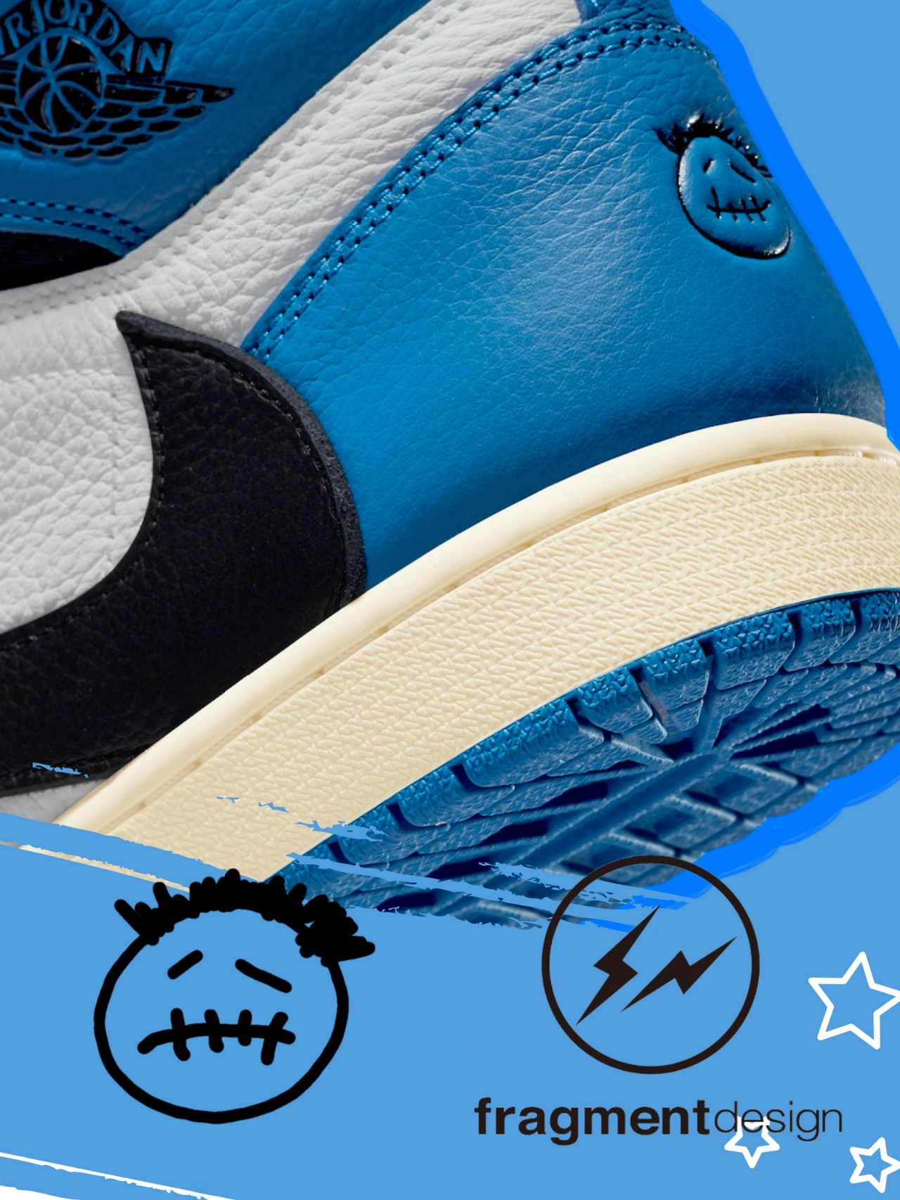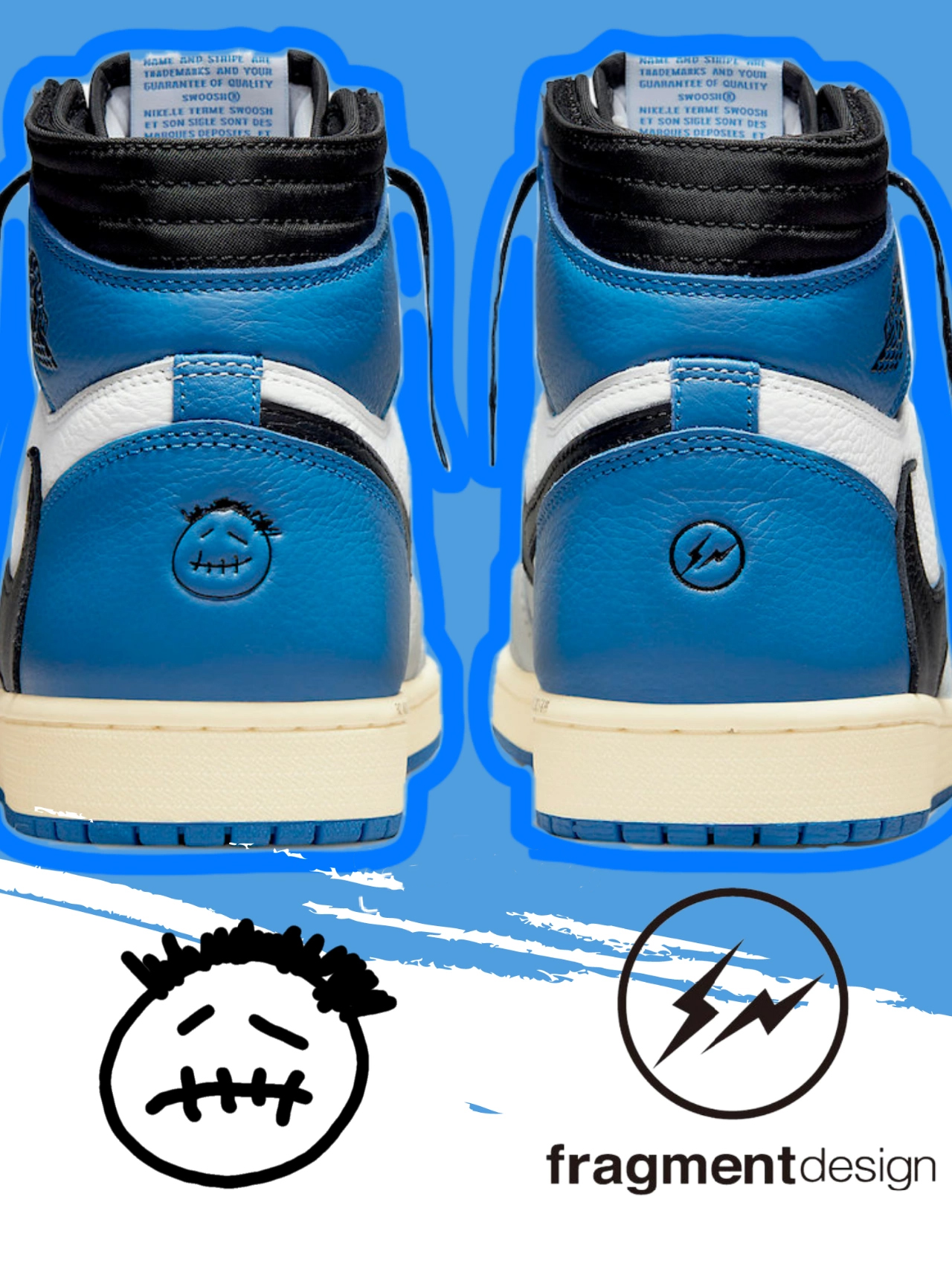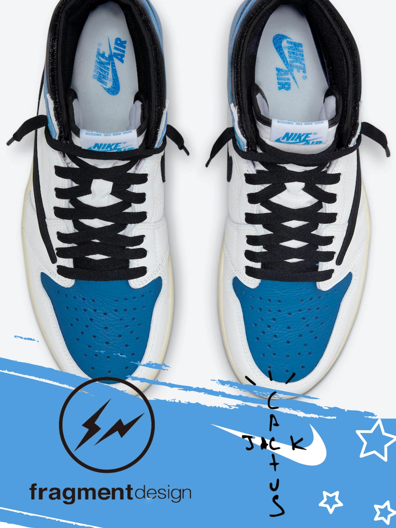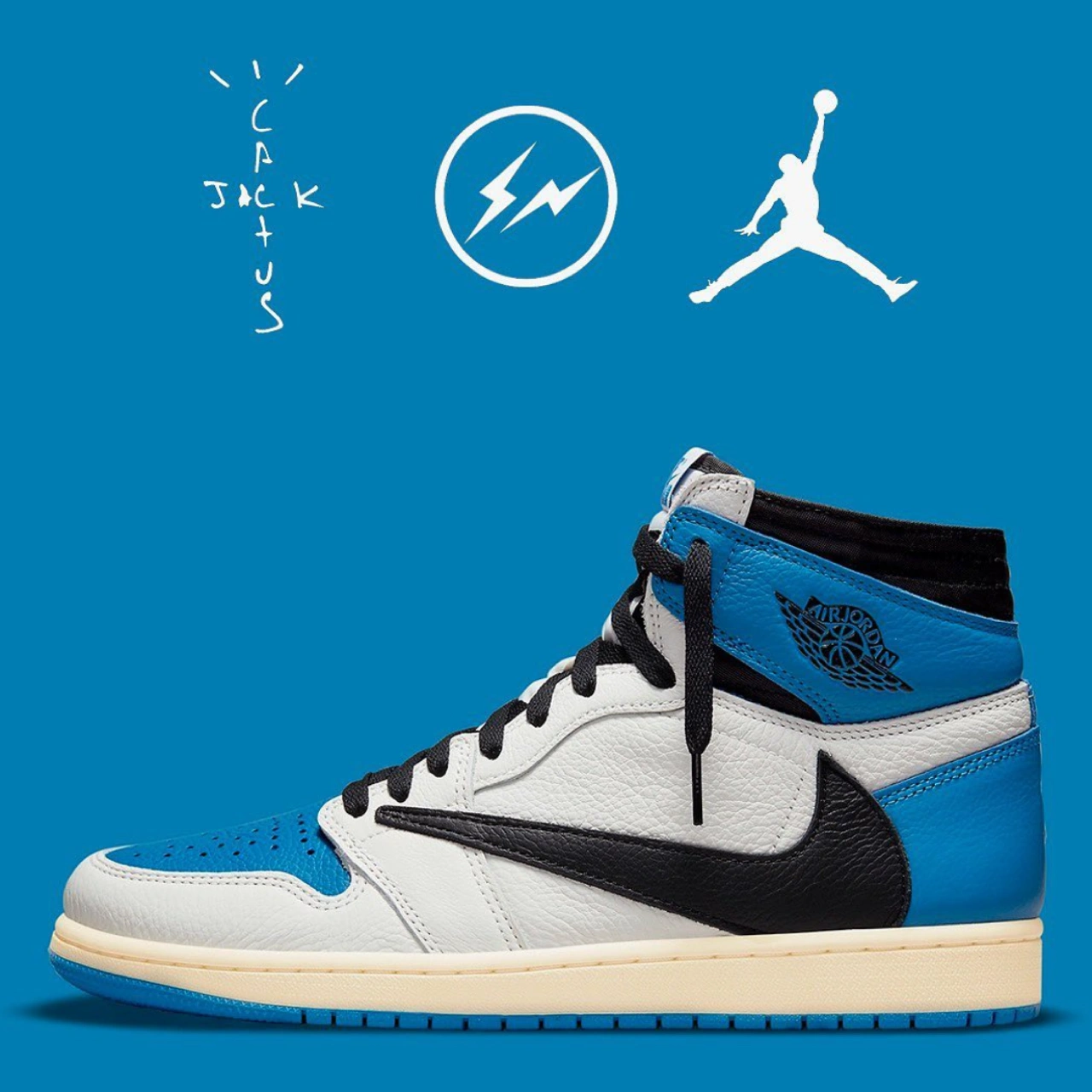 Travis Scott x Fragment Design x Air Jordan 1Low OG SP ホワイト ブルー ブラック ライトニング バーブ
