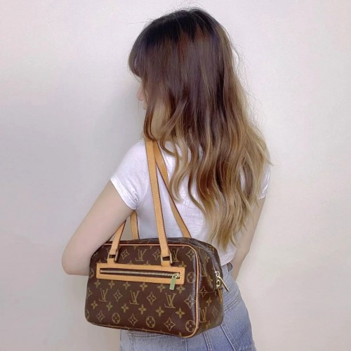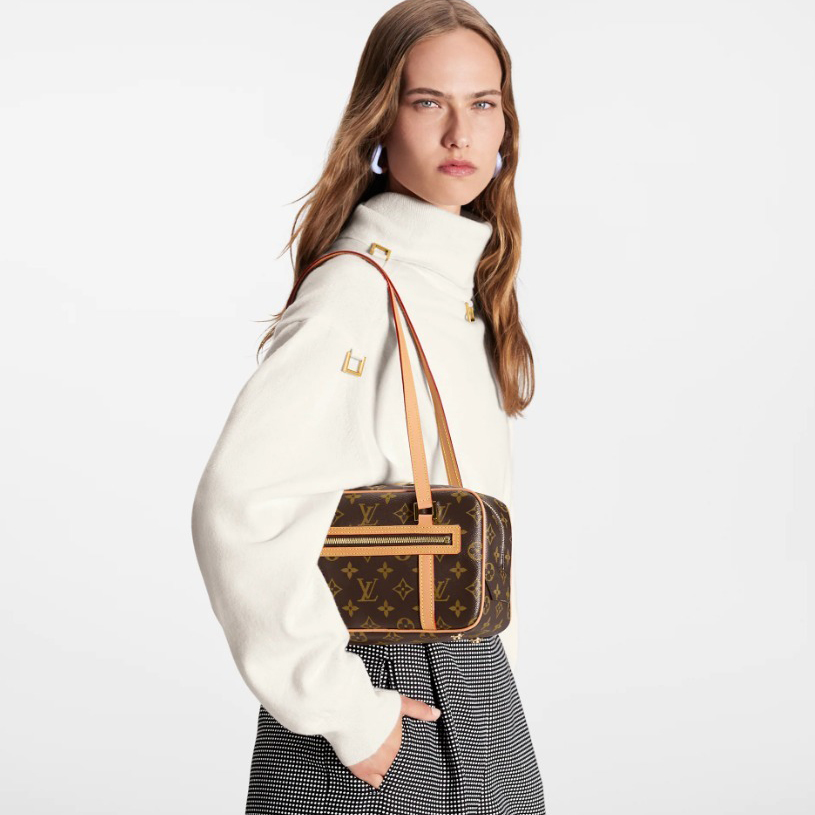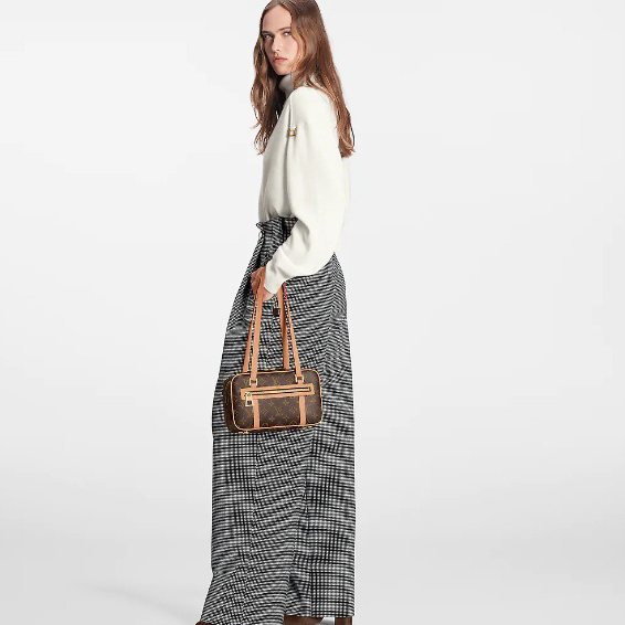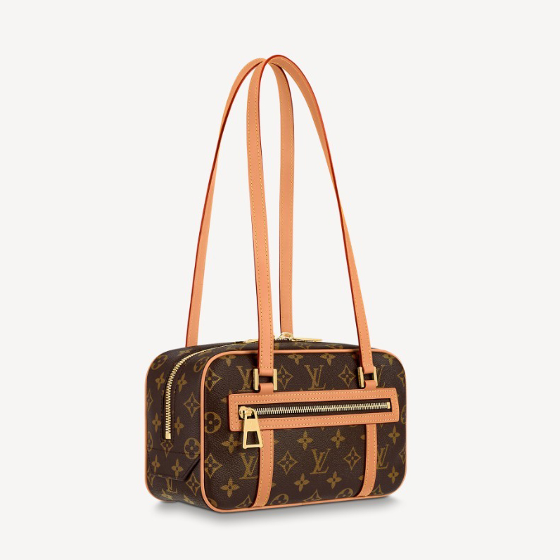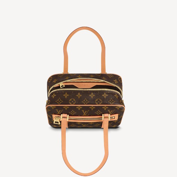 -素材:モノグラムキャンバス-トリミング:レザー(皮革の種類:牛革)-ライニング:マイクロファイバー-金具(色:ゴールド)-フロントにファスナー式ポケット-フロントに内フラットポケット-背面にファスナー式内ポケット-ダブルジップ開閉式-ハンドル:ダブル