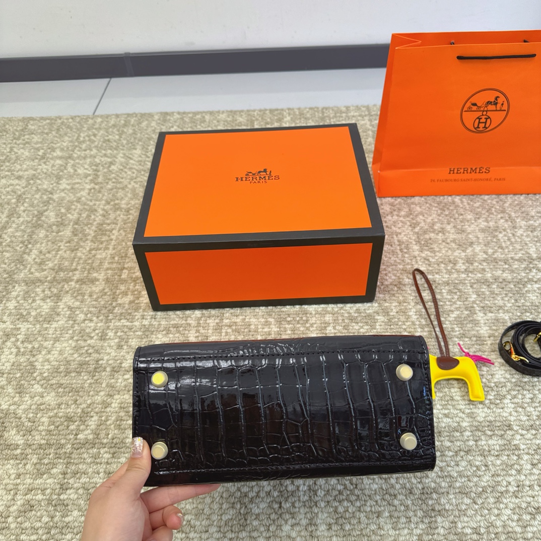 HERMES 高級ワニ革模様 プラチナバッグ