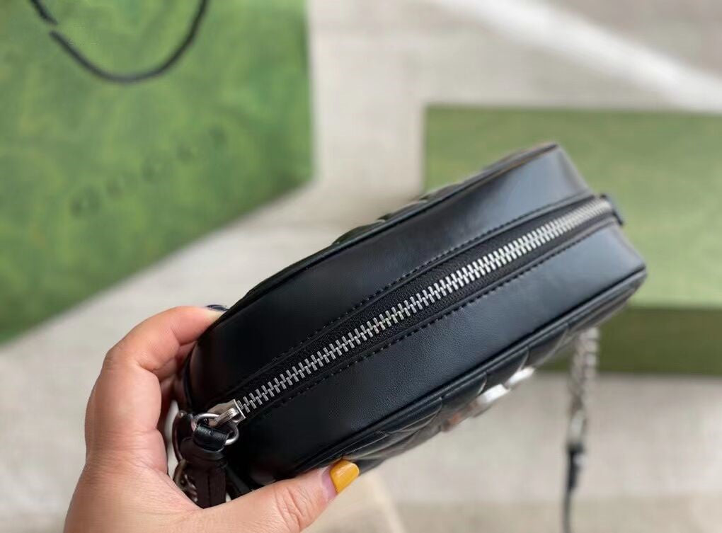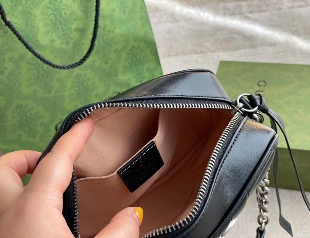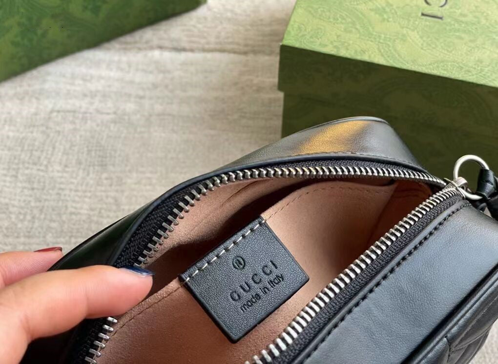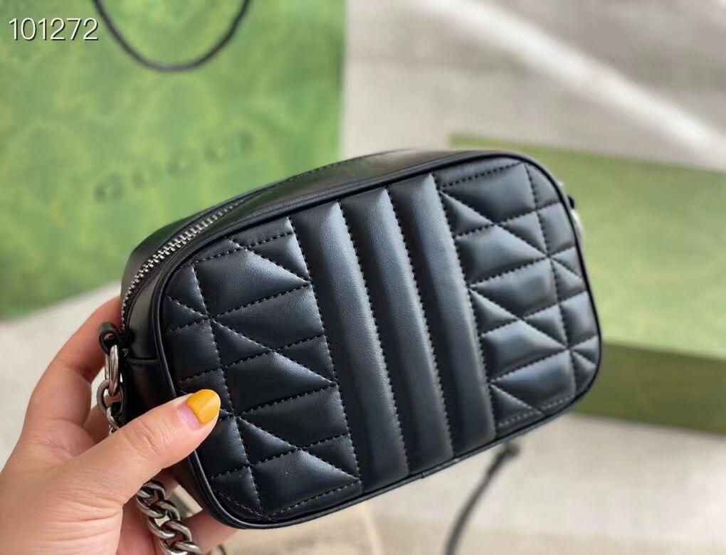 グッチの寵児の選りすぐりの手提げ袋の一員として、GGマーモンシリーズはそのシンボル的なダブルG字母のインターリーブ部品とキルティング皮革で高く評価されています。グッチ「Arria-ファッションアリア」シリーズでは、GGマーモンシリーズが幾何学的なスタイルでクラシカルな素材を表現し、シルバー調のダブルGのアクセサリーを組み合わせて、この驚くべき黒のトランペットリュックサックを発売しました。