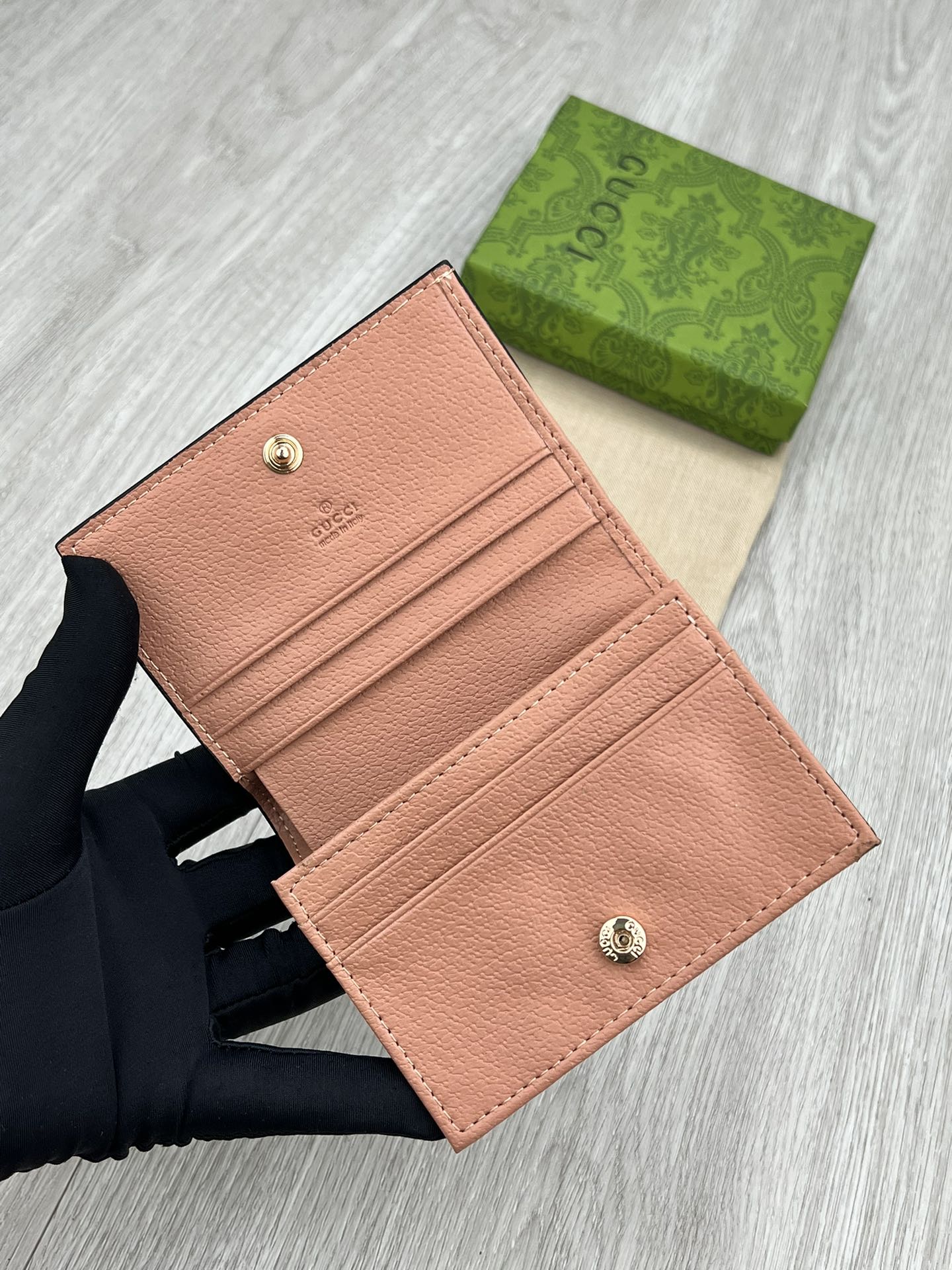 完売必至の人気のあるアイテムです。サイズや在庫のご確認等お気軽にお問い合わせください。※バイヤー確認後、安心の国内発送です。グッチが愛するカラーのひとつであるピンク。その独特の色調には、華やかさや楽しさが宿っています。この〔オフィディア〕カードケース ウォレットをはじめ、最新コレクションにはグッチの新しいピンクのGGキャンバスとローズゴールドのハードウェアを用いたレザー小物が登場しました。ピンク GGキャンバスピンク レザー トリムローズゴールド ハードウェアモアレ ライニングダブルGカードスロット x 5紙幣入れ x 1インナージップポケットスナップボタン クロージャーオープン:幅約11 x 高さ約17.5 cmクローズ:幅約11 x 高さ約8.5 x マチ約3 cmメイドインイタリー商品品番:523155FACC75748